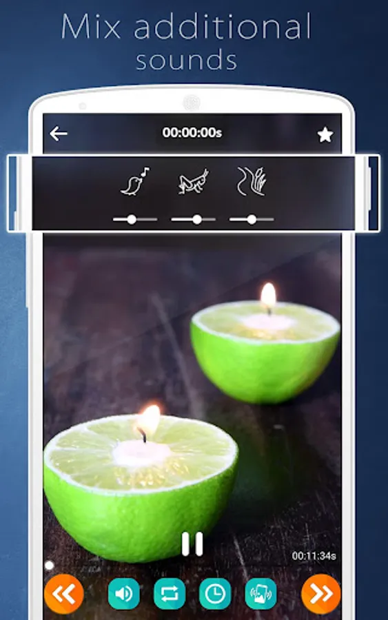 Create your own sound compositions, add and mix relaxation music with the nature sounds such as: birds singing, cicada sounds, rain sounds, wind noise, night sounds and many more.