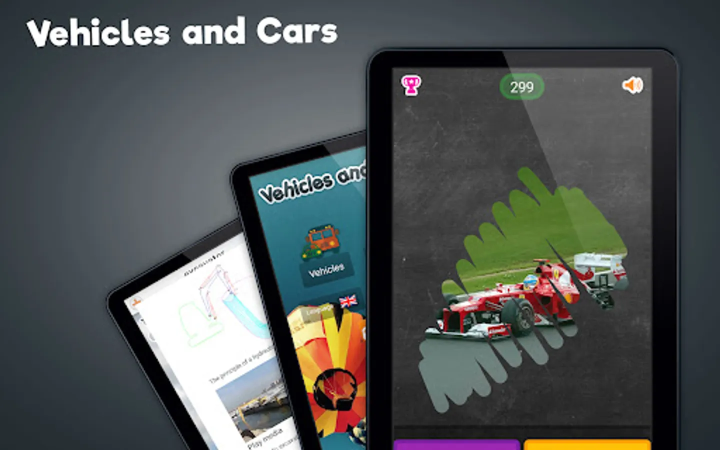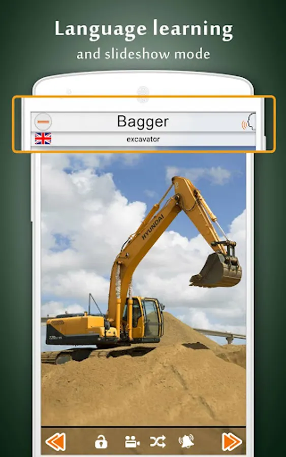 With the option to change the language, the "Vehicle Sounds" application can also serve as a set of language learning cards.