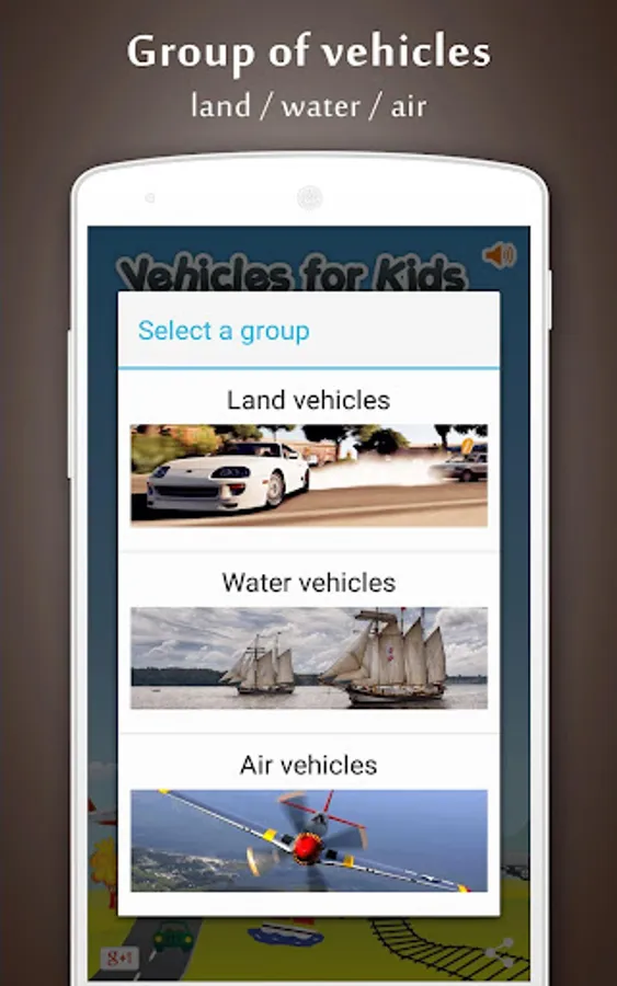 Thanks to this application you will spend your time wisely. It will help you get to know the different between vehicles and cars, the fascinating pictures and vehicle sounds will make you good time in the car, in the waiting room and in many other places.