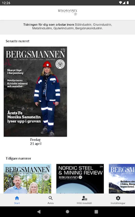 Bergsmannen med Jernkontoret's annals is the Nordic industry magazine for the steel, rock materials and mining industries. The newspaper has the decision-makers within these sub-sectors as readers. Every year, a special issue is published - Nordic Steel & Mining Review - which summarizes the state of technology in the Nordic steel and mining industry.