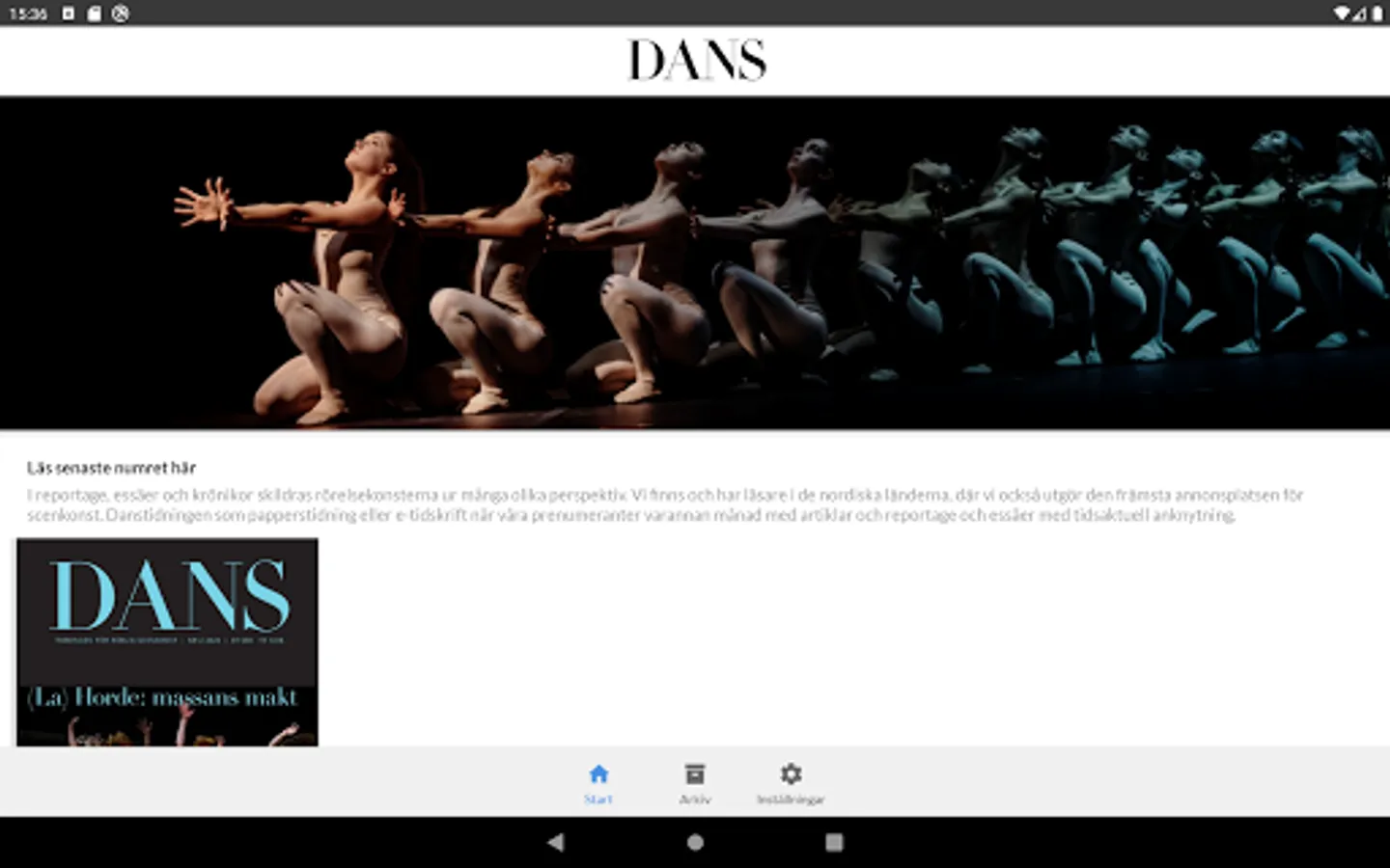 The dance magazine is the only magazine about dance for an interested public in the Nordic countries.