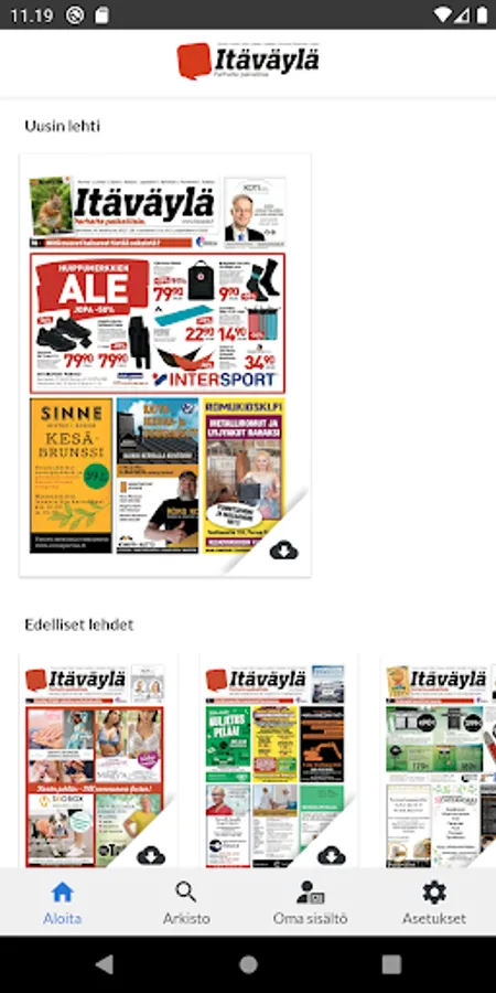 With the Itäväylä application, you can read the weekly magazine digitally. The application also enables you to listen to news from Digilehti. From the archive, you can browse previously published publications.