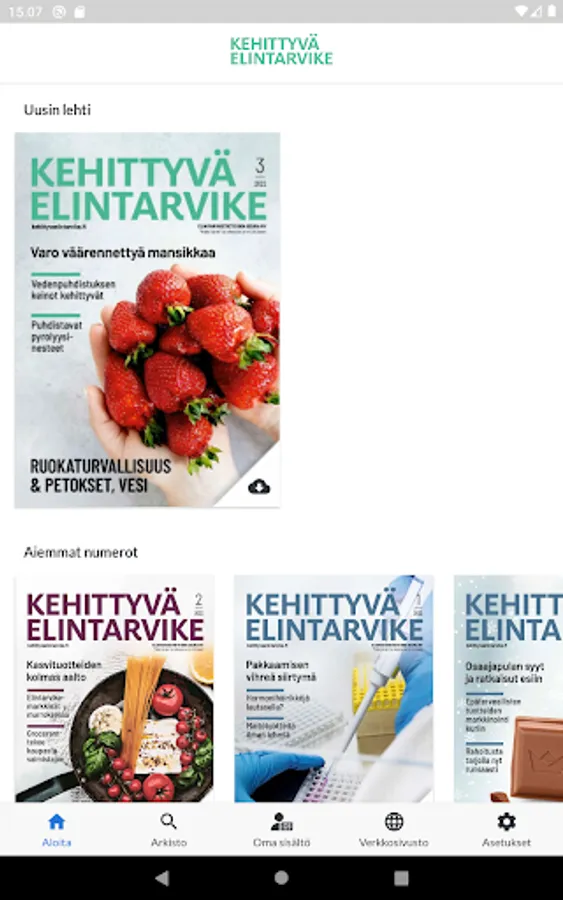 Read or listen to Kehittyvä Elintarvike, the professional and scientific journal of the food industry. Kehittyvä Elintarvike is a trade and science magazine that provides a wide range of news from the food industry, focuses on scientific studies in general language and delves into special issues of the food industry.