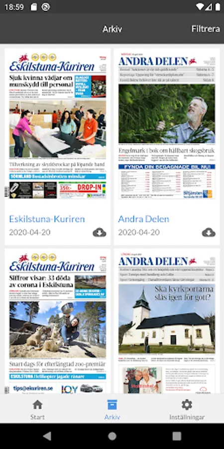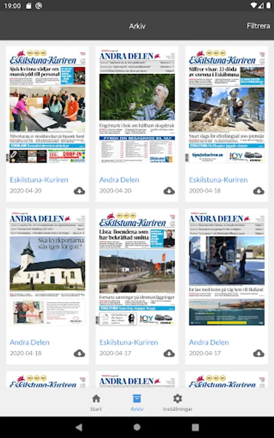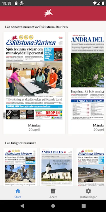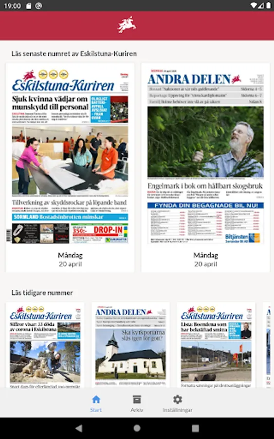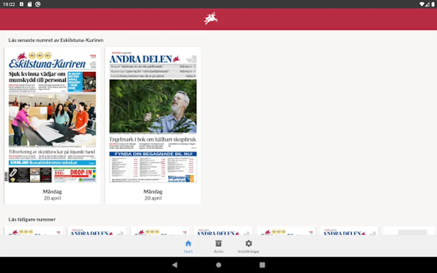 Welcome to Eskilstuna Kuriren. With the e-newspaper you get a digital version of today's newspaper. You choose between article mode or to browse the magazine. Easily download earlier editions of the archive. You can also download the e-magazine and read it offline, at your convenience. With us you always follow the local news flow, sports, family, culture, economy, business and much more!