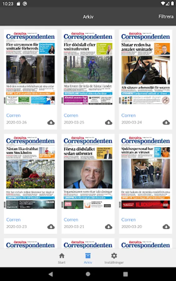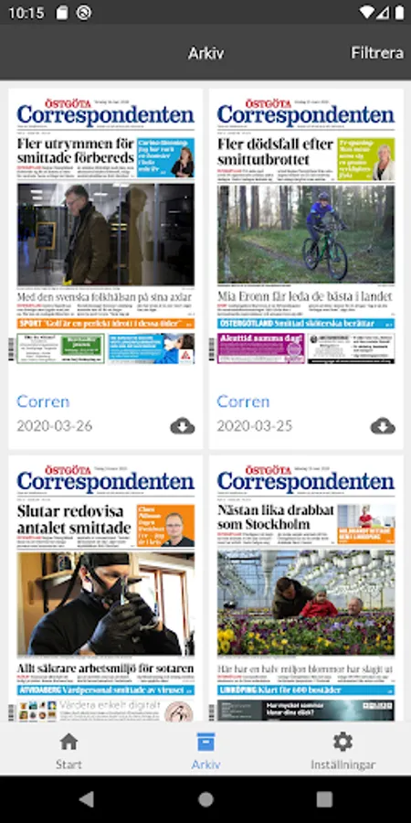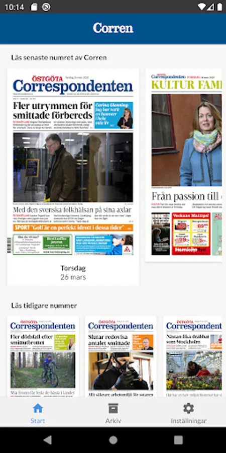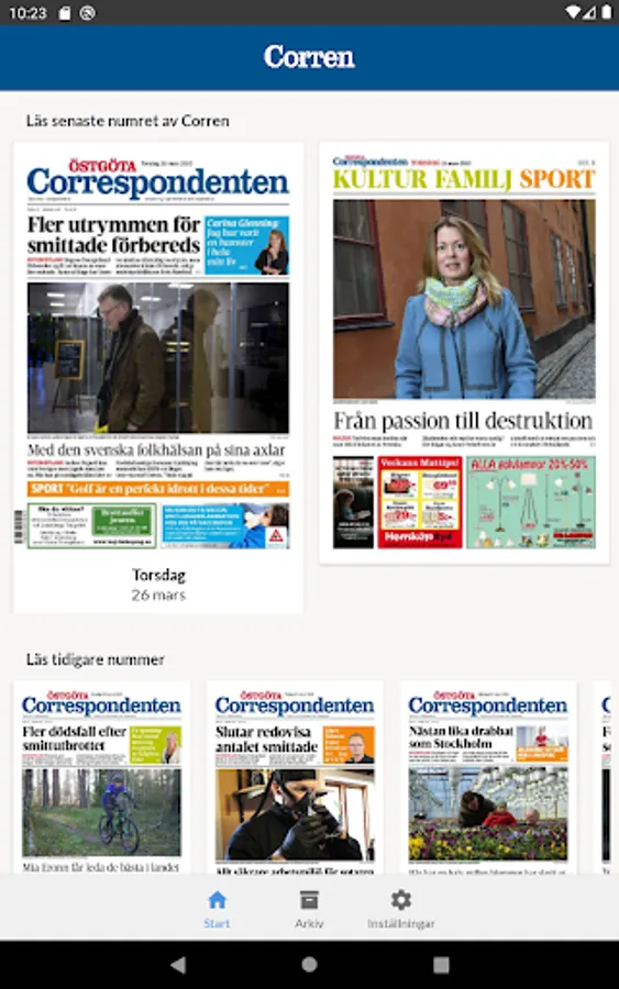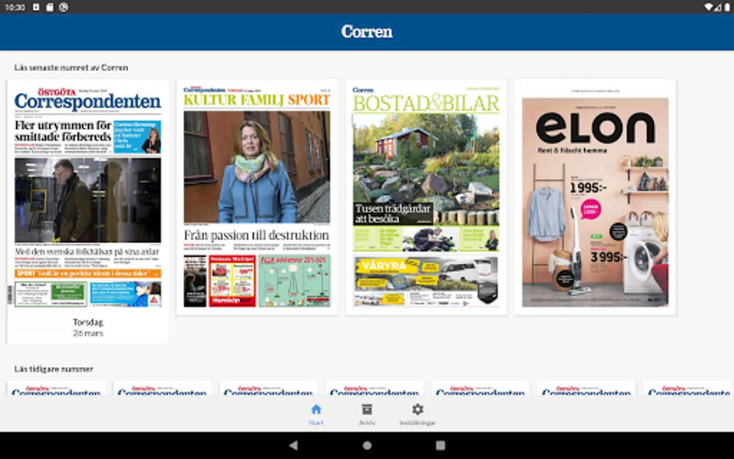 Welcome to Corren. With the e-newspaper you get a digital version of today's newspaper. You choose between article mode or to browse the magazine. Easily download earlier editions of the archive. You can also download the e-magazine and read it offline, at your convenience. With us you always follow the local news flow, sports, family, culture, economy, business and much more!