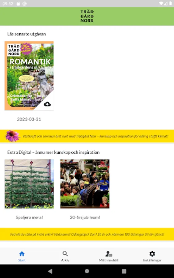 Download the app for a free sample. And become a subscriber when you want to take part in the entire content – five issues per year, more than 100 magazines in the archive, as well as extra material. Plant power and summer all year round with Trädgård Norr! Welcome!