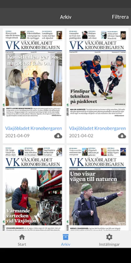 You can choose to read the articles in a newspaper mode where you scroll through the pages and zoom in on the page. Another option is to click on an article - then it will open in a readable window together with the images that belong to the article.