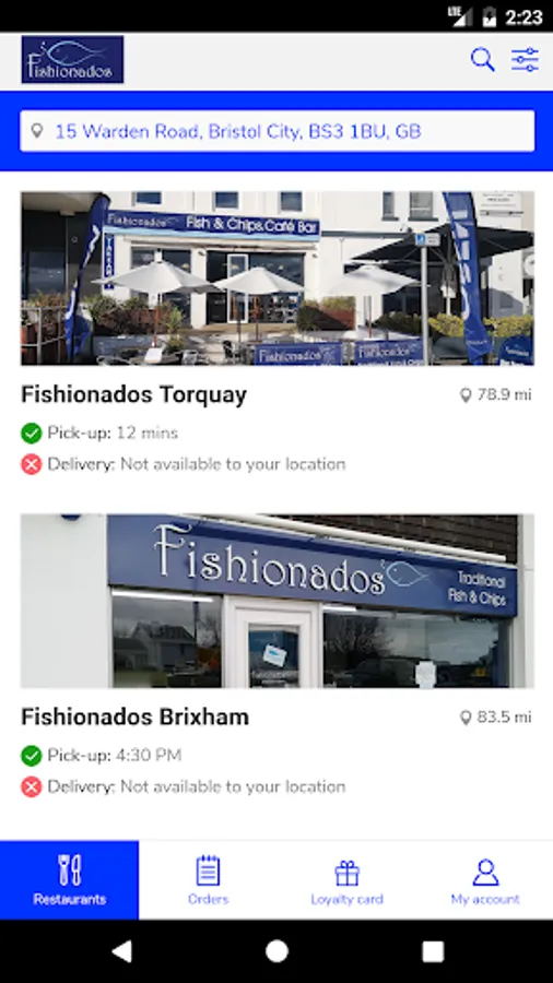Online ordering and payment for delivery or collection of Fish and Chips from Fishionados of Brixham. Associated loyalty points and their redemption against future purchases.