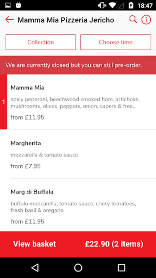 Choose from our full menu of freshly prepared pizza, pasta and antipasti and select a time for collection that suits you. Beers and wines also available for collection....Secure online payment allow for quick and easy collection.
