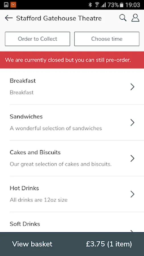 This app allows customers to pre-order their favourite food and drinks directly to their table and to pre-order their interval drinks to a collection point.