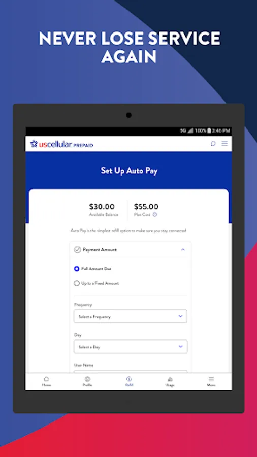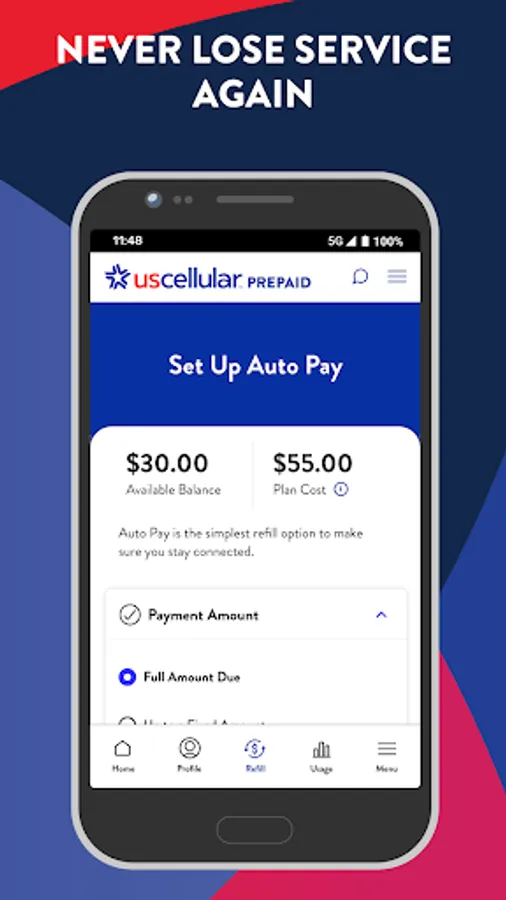 Your My UScellular® Prepaid account at your fingertips – anytime, anywhere. Safely and quickly check your available balance, see your data usage, make a payment, set up auto pay and more.