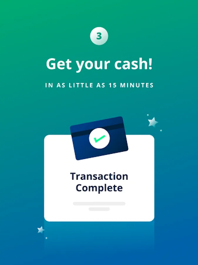 3. Receive: Cash will be in your account in as little as 15 minutes
