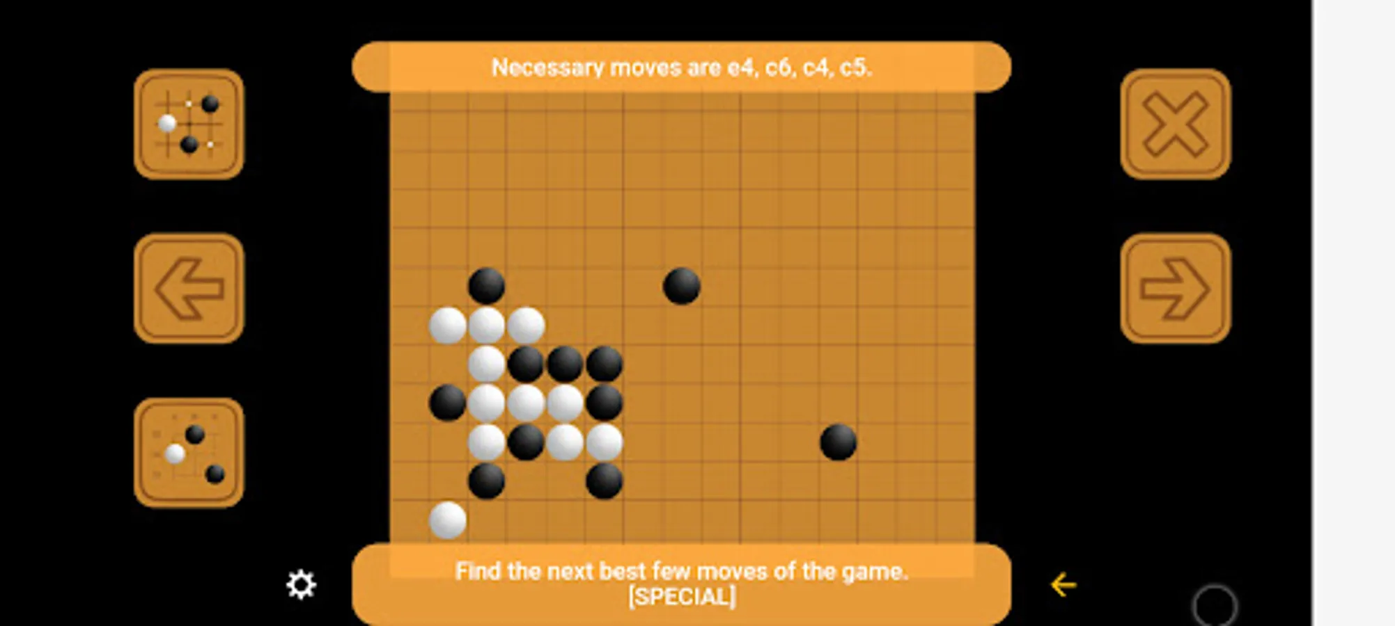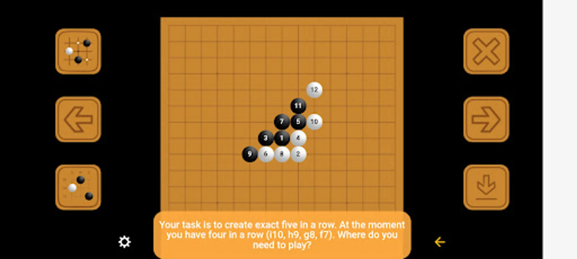 Also there four different types of tasks: Attack, defense, victory by continuous fours and Special (interactive solving).