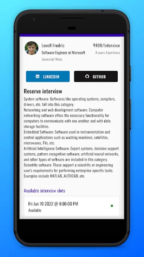 The app allows you to book one-to-one mock interviews with experienced professionals and get feedback on your interview performance. Practicing interviews in similar circumstances of hiring prepares you for the actual hiring.