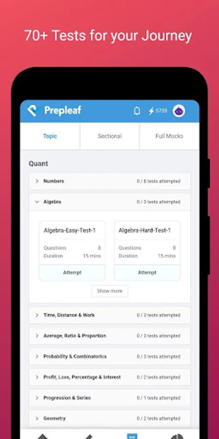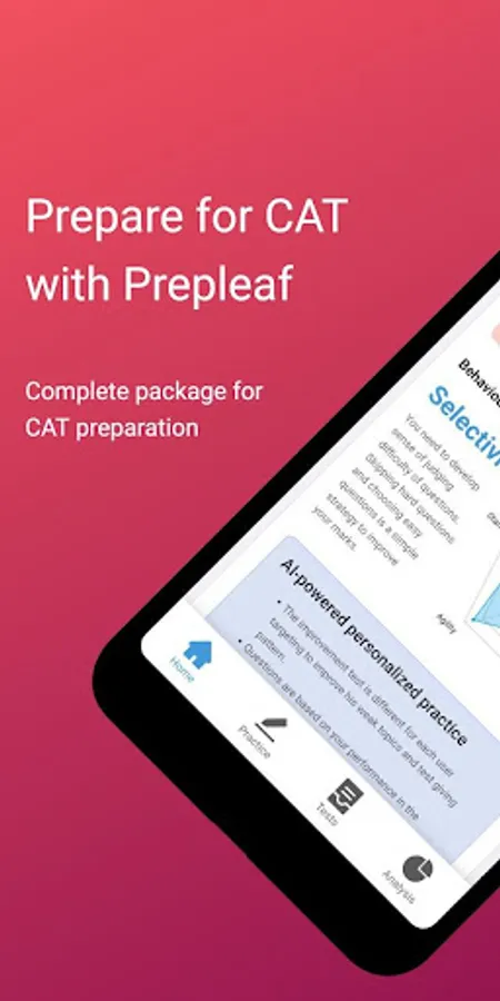 CAT Preparation App (Online Test Series) by Prepleaf is a free app for MBA entrance exam preparation like CAT, XAT, SNAP, and NMAT. Prepleaf offers Free Practice Series, Free Test Series (Topic Tests and Full Mocks Tests), Personalized Analysis, Recommendations and Social Learning Network. If you are preparing for the CAT 2020 Exam or other MBA entrance exams, it's the best app to add to your preparation.