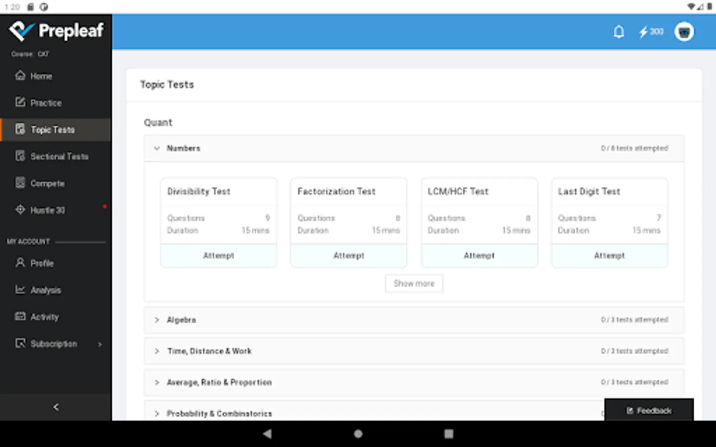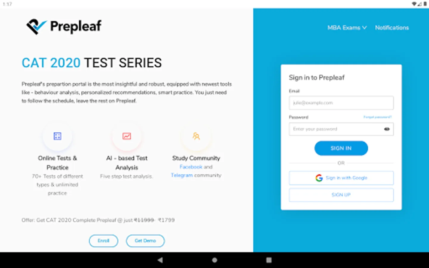 Website: You can also access the website https://cat.prepleaf.com which has exactly the same features as this app.