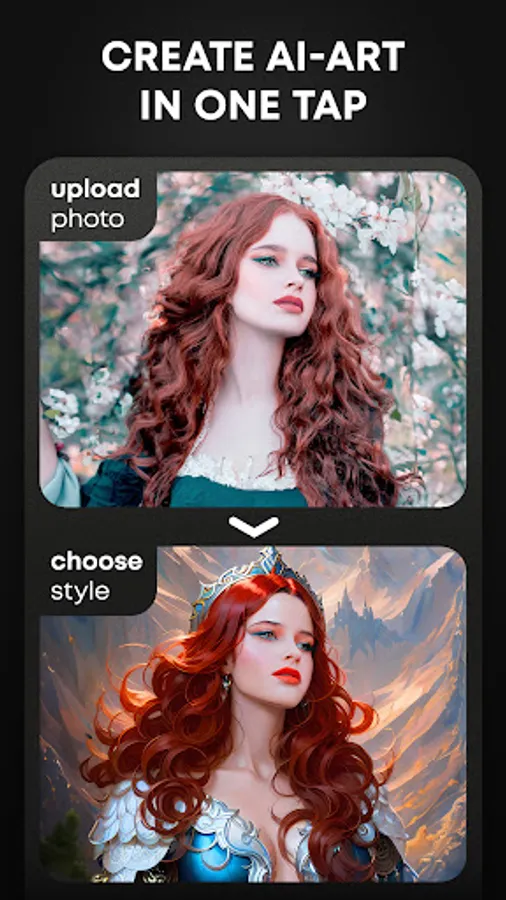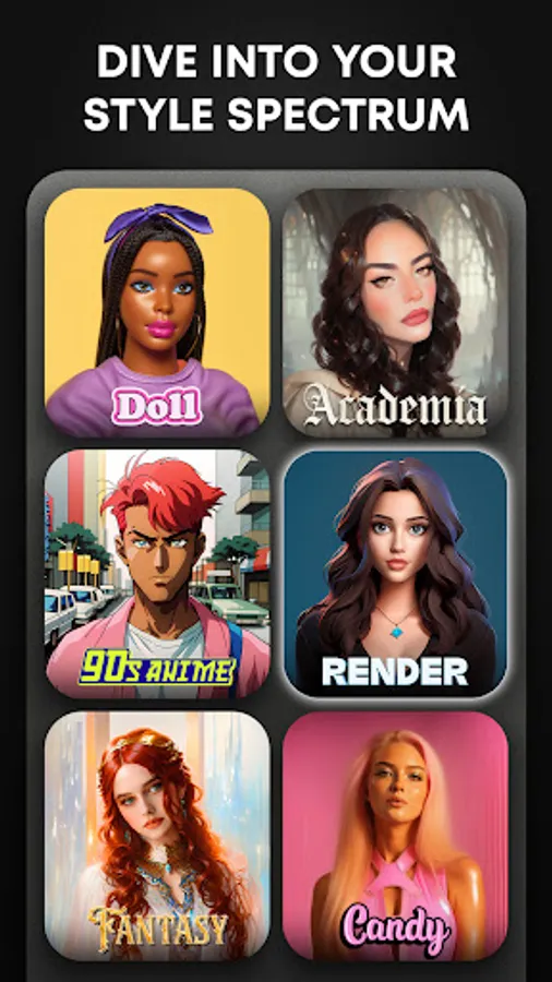 Browse our wide selection of AI-produced aesthetics and looks carefully concocted by our 3D art experts. Choose the one you like and have it applied to your favorite photo—in one tap!