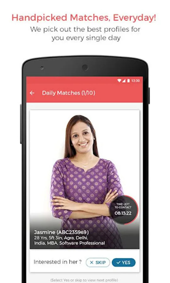- Create your profile and set up your partner preferences based on age, location, education, and community.