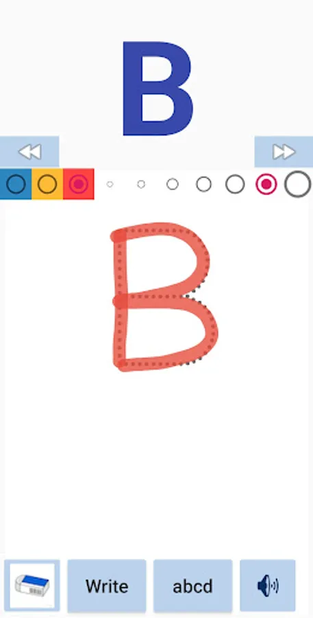 ABC Writing -Tracing Alphabets app is designed for preschooler or kinder garden kids to practice writing English Alphabets . ABC Writing -Tracing Alphabets app contains a very easy interface . The app supports capital letters and small letters. Audio is available for each letter. The users can use the next and previous navigation buttons to learn alphabets.