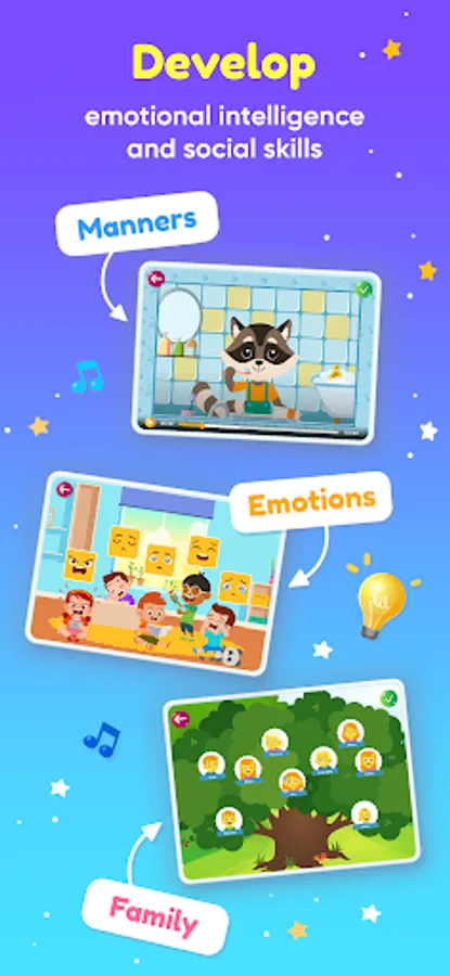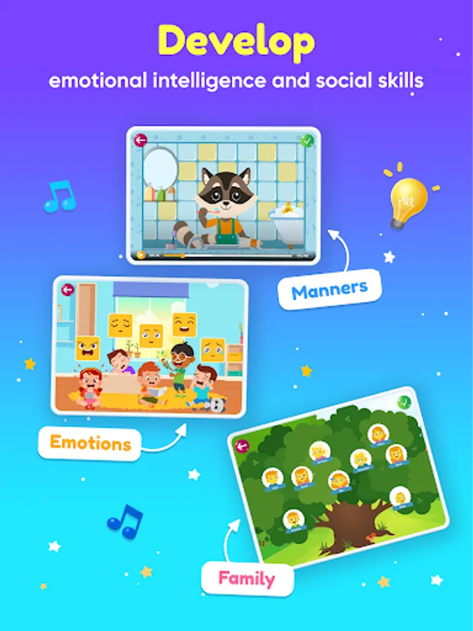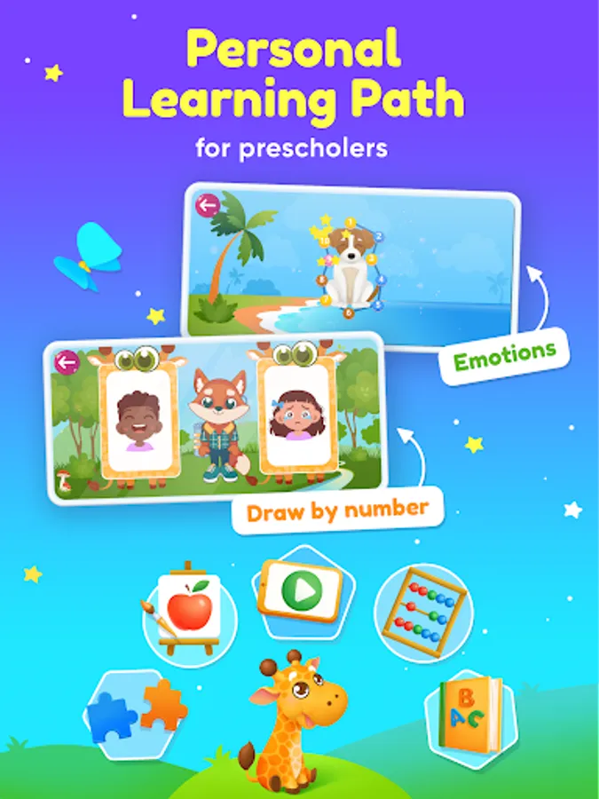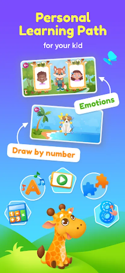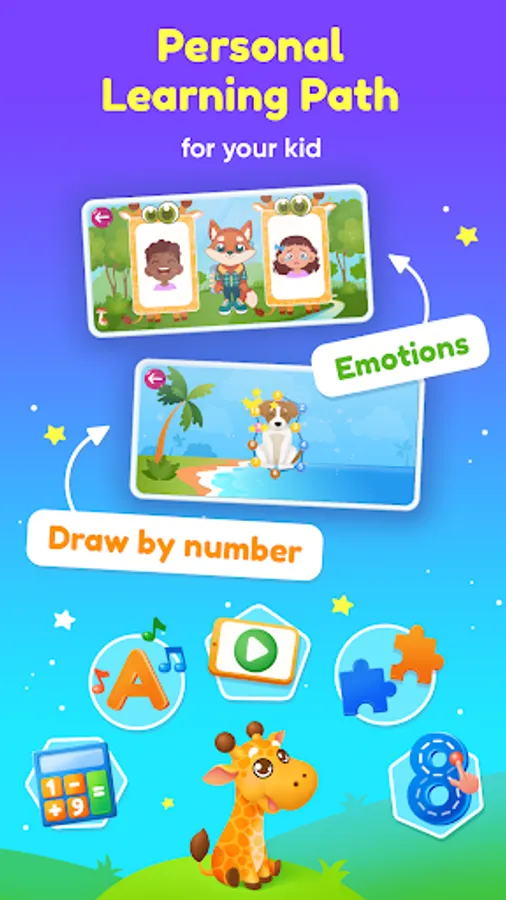 Kid first activities creates an individual education program according to age, gender, interests of your child. This kid's activities are aimed at developing cognitive abilities, emotional intelligence, social skills, improving attention, memory, imagination, communication skills, and expanding the worldview.