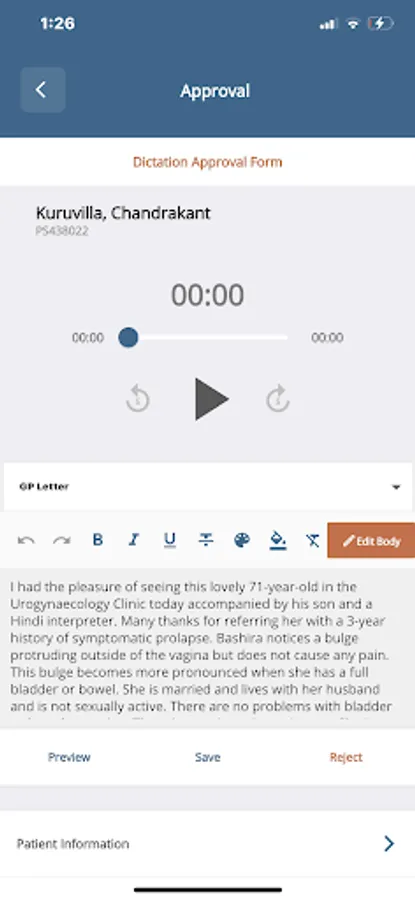 The Prescribe Digital v11 Mobile™ allows you to easily dictate clinical letters using your own device anytime, anywhere. This healthcare app captures and sends your audio files to the eDoc v11™ system, which manages the letters through our highly secure and automated production processes.