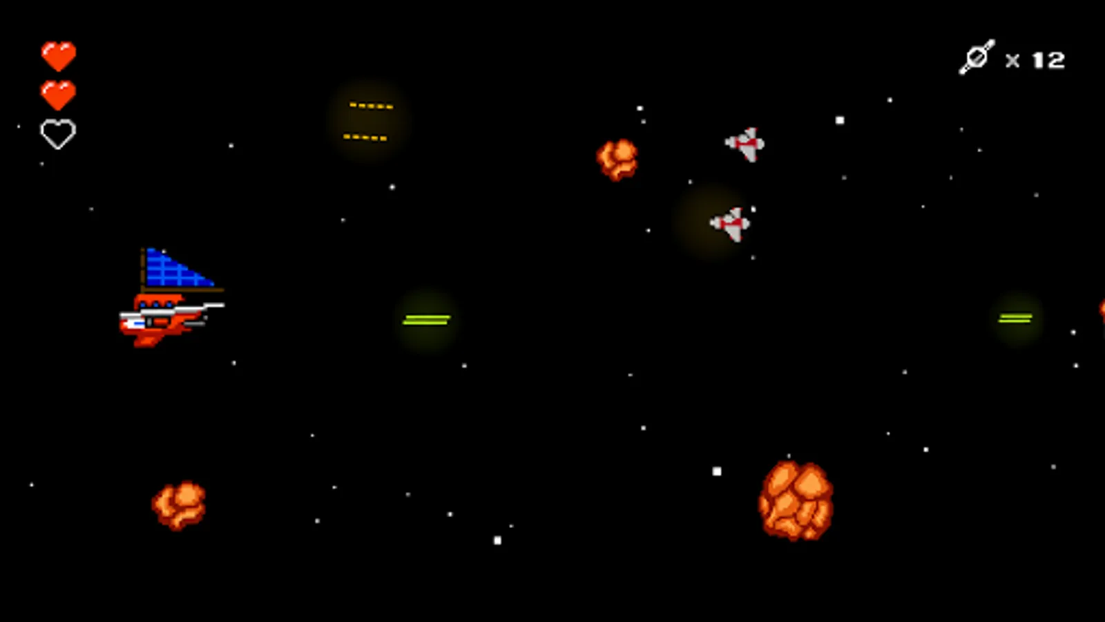 * Find hidden music notes to unlock jukebox featuring original Rocketboat recordings and chiptune remakes.