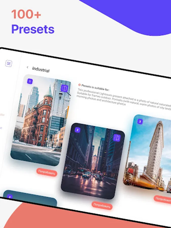 In Presetion, you will find ready-made presets for each shot. For ease of search, they are divided into several categories, such as Winter, Sunset, Portrait and others. The description of the categories indicates for which photos the presets will be most profitable. Overlay them in the photographs you take. The second - and the photo will be turned into a worthy of your Instagram account.