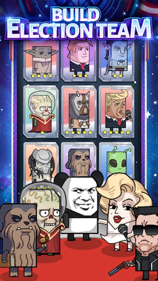 As a candidate from Earth, you have a great chance to become the next President of the Galaxy. You'll need to assemble your special interstellar campaign team and travel to different universes and star systems to find potential voters. Gain support from various life forms across the entire cosmos! Use "compliant" methods to defeat competitors from other galaxies! By then, you'll be the ruler of the universe!