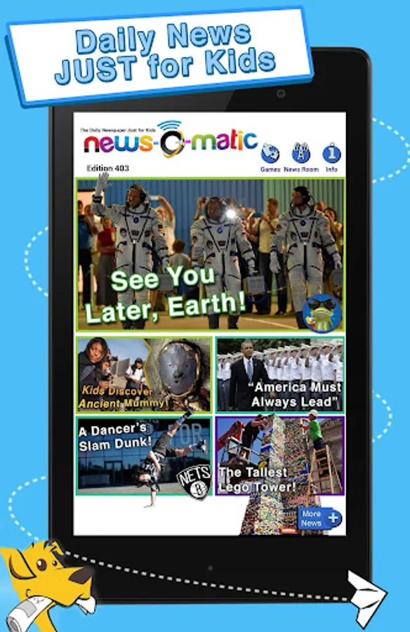 News-O-Matic covers relevant news of the day in an engaging way, exploring its many facets through images, maps, videos, and games. Whether your interest is sports, science, world news, or wacky events, News-O-Matic delivers what’s making the news! It offers a window to the world and beyond helping readers become global citizens!