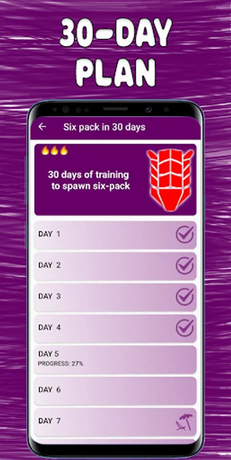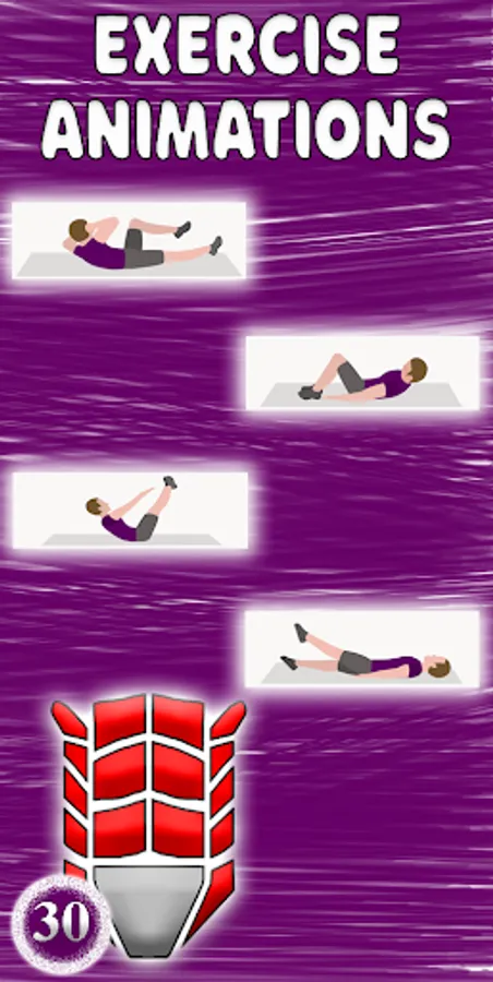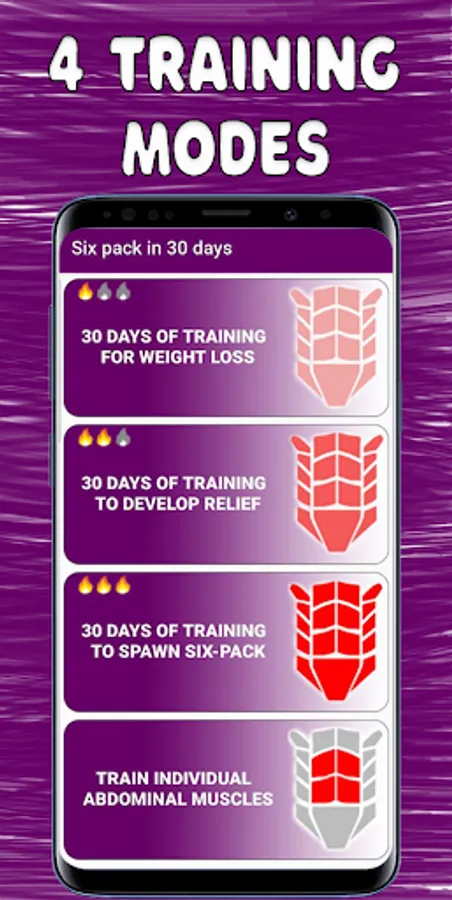 Three modes with thirty-day training programs for different levels of training and goals will allow you to pump up your abs and abs cubes as quickly as possible and with minimal time.
