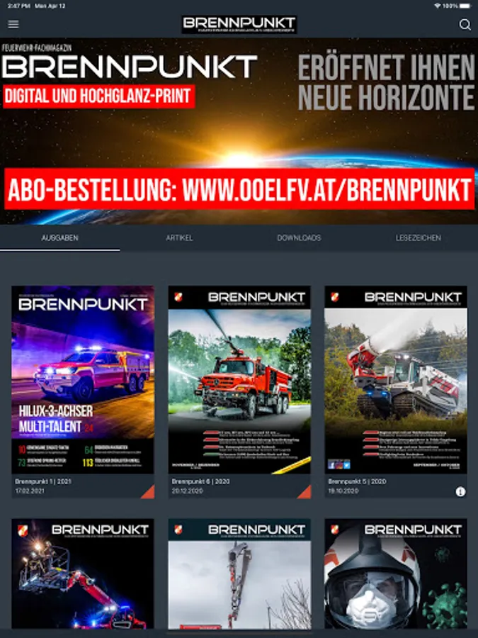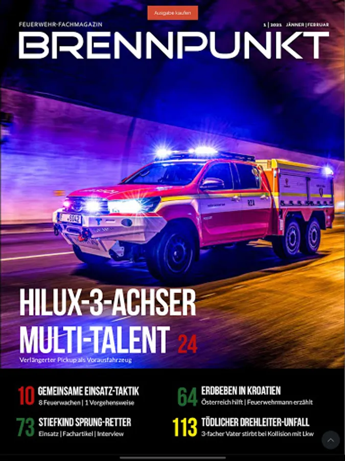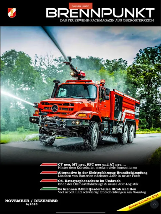 The fire department magazine BRENNPUNKT is the modern source of specialist information with reports from all over the world, training and further education topics, reports on new vehicles and new developments in the fire department and also deals with large deployments accordingly. Of course, great importance is attached to high image quality and visual presentation