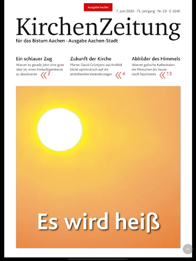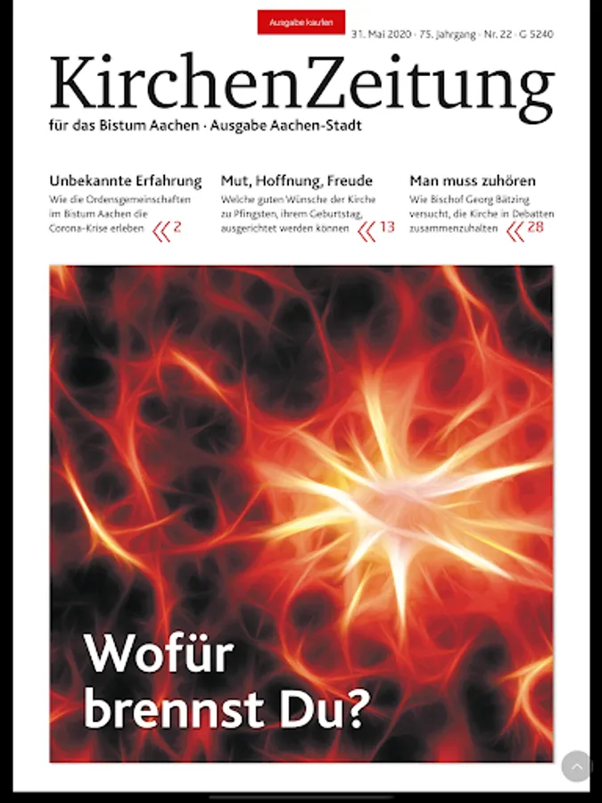 More informations under www.kirchenzeitung-aachen.de. You can also acquire separate editions of the church newspaper through the store, at a price of 1.99 euros.