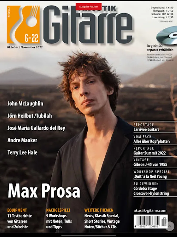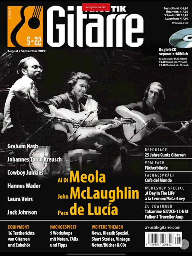 ACOUSTIC GUITAR is Europe's largest magazine for acoustic guitar, with news and reports, test reports, workshops, CD and DVD reviews, book reviews, as well as manufacturers Portraits exhibition and event reports.