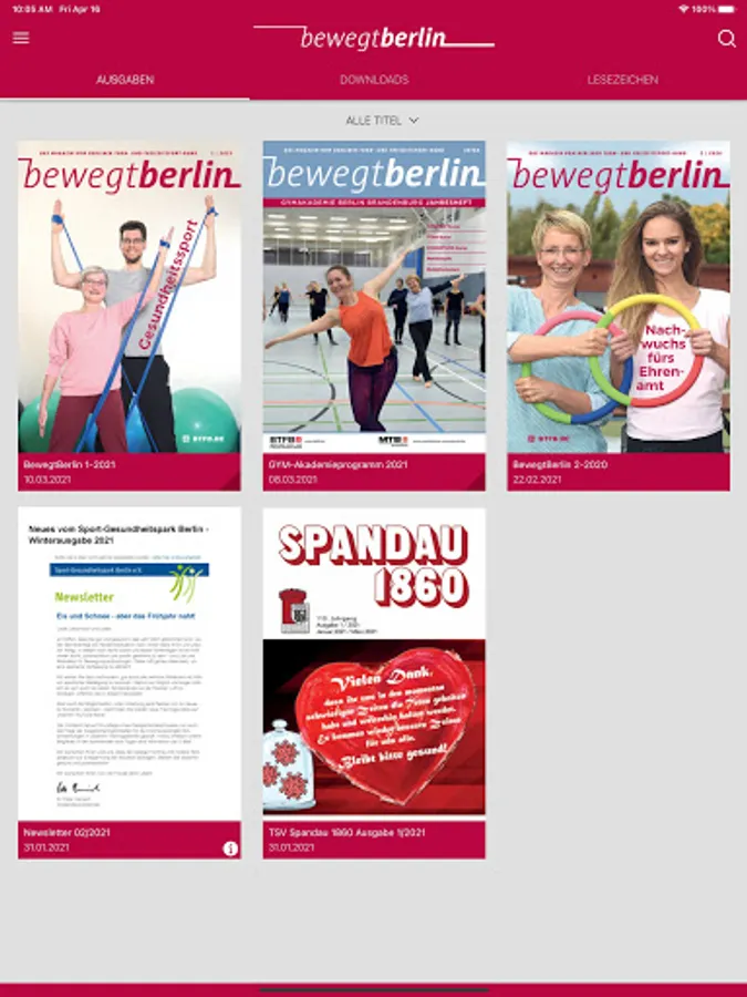 In addition to the magazine, the app also contains the club newspapers of the BTFB member clubs as well as publications and information about sports in Berlin.