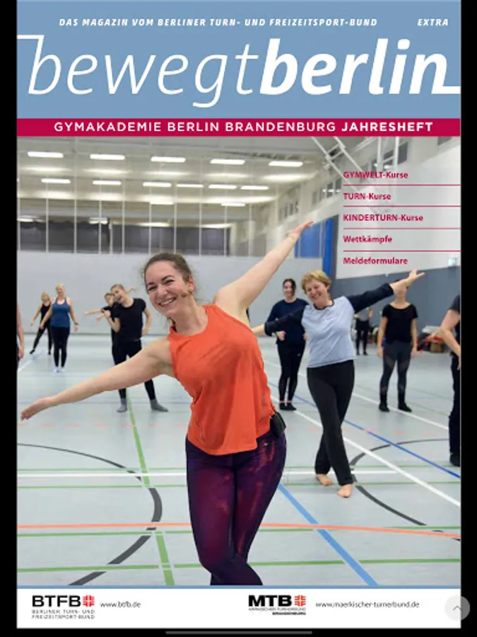 The Berlin Gymnastics and Recreational Sports Association (BTFB) relies on change and movement with its association magazine, in the best gymnastics as well as in the figurative sense. Stories and content that move the association, the city and its people can be found in it as well as key topics that are dealt with in-depth and multifaceted.