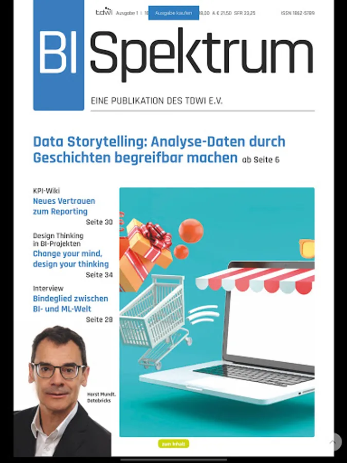BI-SPEKTRUM is aimed at all those responsible for analytics, business intelligence (BI) and data warehousing (DW) in companies, software houses and consultants who develop and implement such systems, as well as scientists who research and develop in this discipline and thus the Provide the basis for new practical applications. It informs its readers about all trends in this area, provides use cases from practice (case studies) and presents opinions on current topics as well as news for the BI community.
