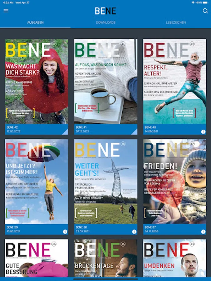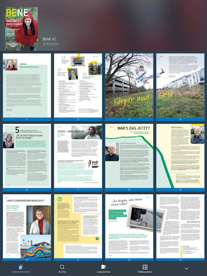 BENE is breaking new ground in communication – we are the first diocese magazine to offer an online presence (www.bene-magazin.de) in addition to the 36-page, diverse print edition (circulation: almost 500,000). With this app, the BENE package is complete: for everyone who doesn't get the issue home. Or for those who like to be entertained, inspired and amazed on the go.