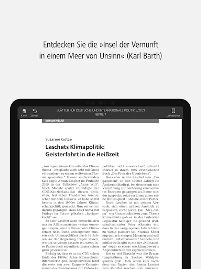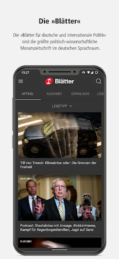 • Test the app for two months free of charge at www.blaetter.de/probeabo