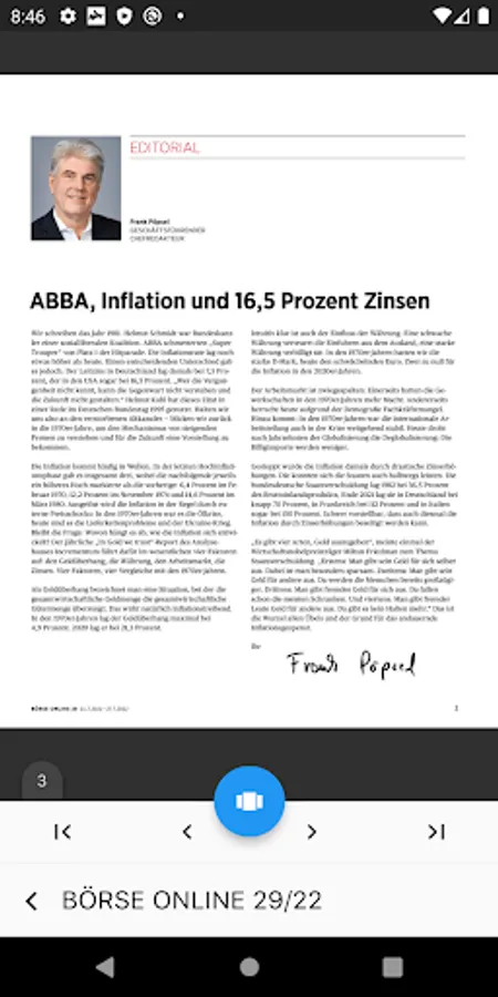 • The BO digital app offers the possibility of new digital editions of business magazines from Finance to read comfortably publishing on the mobile device. The article view is optimized for your mobile device and adapts the variable screen size