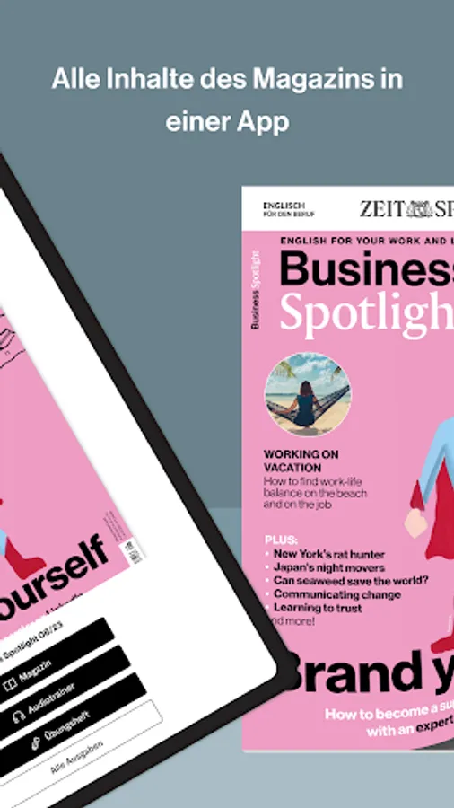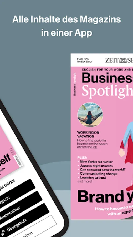 Do you have a print subscription to Business Spotlight? You can get all of the contents of the Business Spotlight app for a small additional charge. Please contact ZEIT SPRACHEN customer service directly at: abo@zeit-sprach.de or +49 (0) 89/121 407 10.