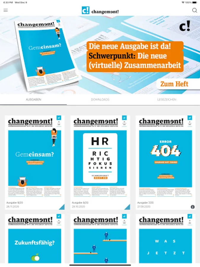 With the changement app, you can read the specialist magazine for change processes in the company on your mobile and digitally.