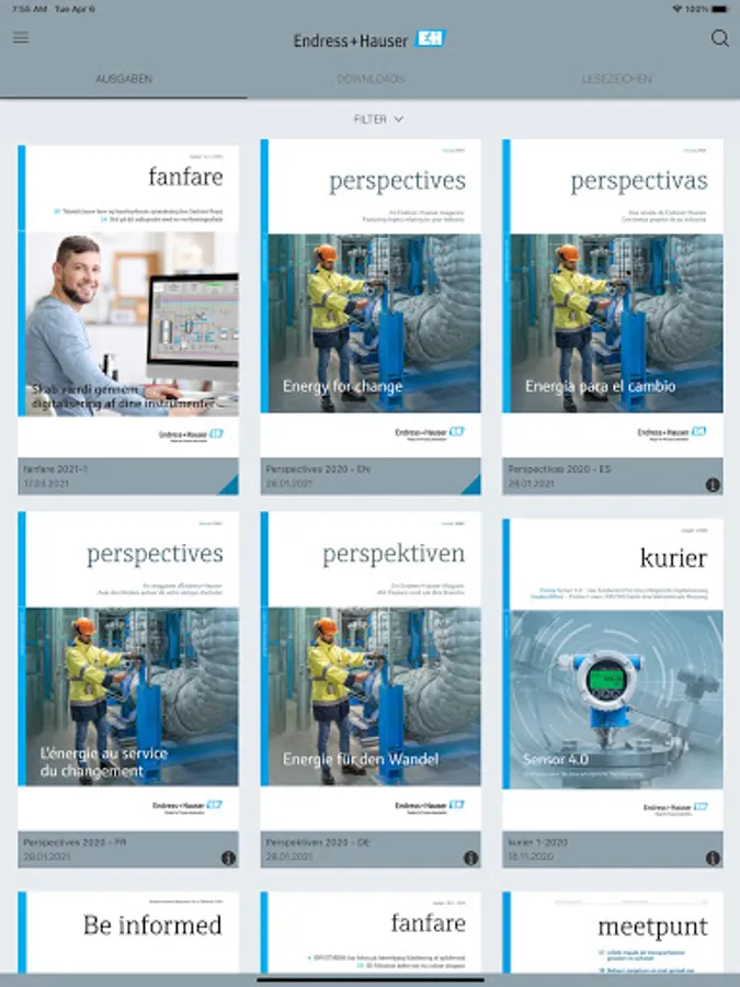 The Endress+Hauser Kiosk app offers you a convenient way to access our digital customer magazines from anywhere in the world. You can read the editions offline or online and in portrait or landscape format. Useful features such as bookmarks, full-text search and pure text mode enrich the individual quality of the reading experience on your mobile device.