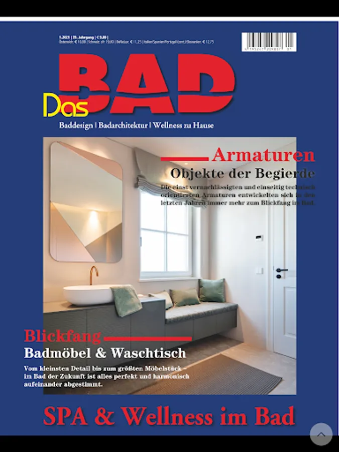 The premium publication "The Bad" is an integral part of the European media landscape now for over 32 years. counting the first year in which the media under the name "Bath & Kitchen" was published, proud 36 years of experience come round together to the bathroom. "The Bad" is one of the oldest special-interest magazines in this segment: the big, opinion-leading Trend Magazine Around Bad & Wellness. For eight years now, there is the publication "The Bad" in an app and eBook version. In the world trade fair ISH in Frankfurt, there is a special edition "edition The bathroom bathroom planning"
