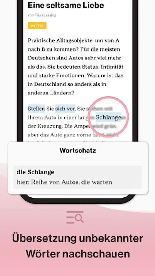 Every month you will receive new content for the most important contexts in everyday life and work, including a dictionary function. Each magazine has 70 pages of grammar, texts and exercises at three levels: easy (A2) - medium (B1) - difficult (B2-C2). With a simple click you can hear appropriate audio content directly to the text.