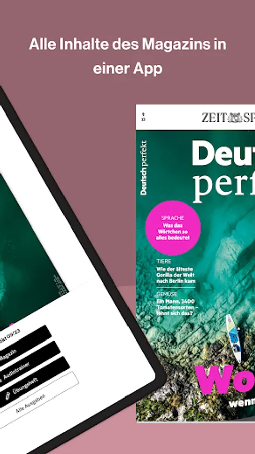 Do you have a print subscription to German Perfect? You can get the content of the Deutsch-perfect app for a small additional charge. To do this, write directly to ZEIT SPRACHEN customer service at: abo@zeit-sprach.de or +49 (0) 89/121 407 10.