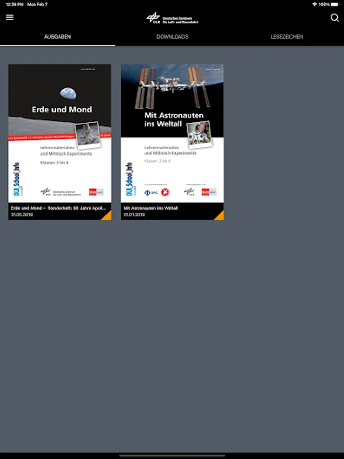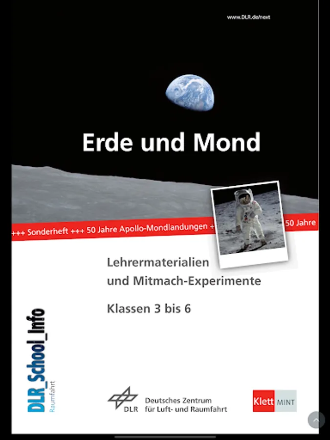 The German Aerospace Center (DLR) in cooperation with the publisher Klett MINT publishes a series of teaching materials, some of which are also available as digital learning media.