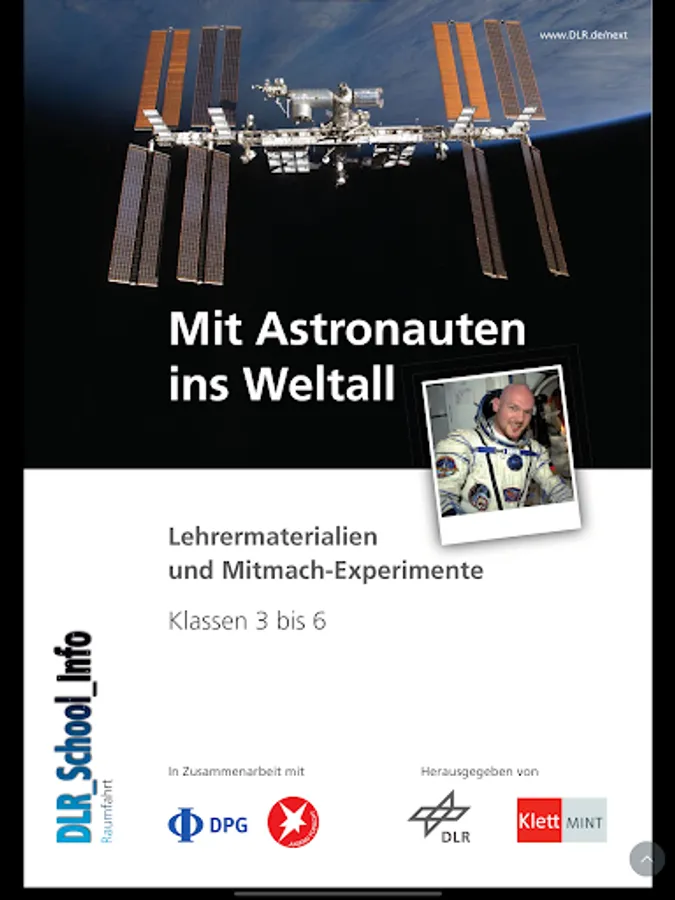 Space travel inspires many young people. The fascination of this topic can be wonderfully used to arouse and increase interest in scientific and technical subjects. The booklets are available in print form and as a digital learning medium with numerous additional materials. They are aimed at the 3rd to 6th grade and are available free of charge. All content was created in collaboration with teachers. This is especially true for numerous hands-on experiments that can be implemented with readily available materials in the classroom.