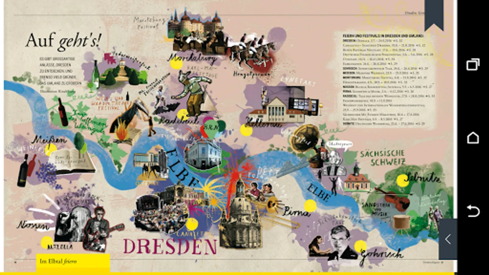 Tourists, art and cultural lovers, students, academics, entrepreneurs and citizens Dresden Themselves - "Dresden Magazine" includes all of the mostimportant upcoming events in 2016 and invites you to discover, help enliven and celebrate the city on the Elbe. For international visitors, there is an app providing information in English.