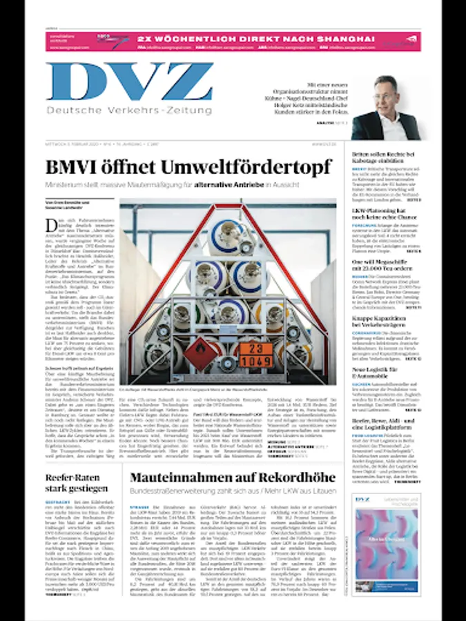 With its wide network of correspondents in Berlin, Brussels and many other countries DVZ offers exclusive transport policy first-hand information as well as exciting reports from the transport and logistics markets of today and tomorrow.