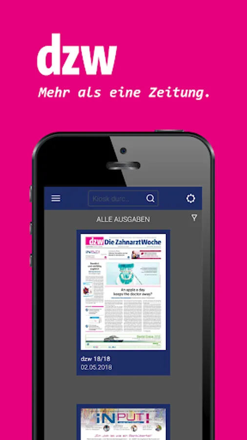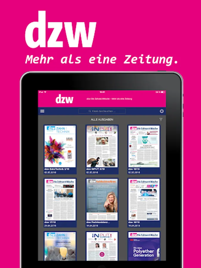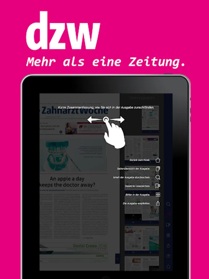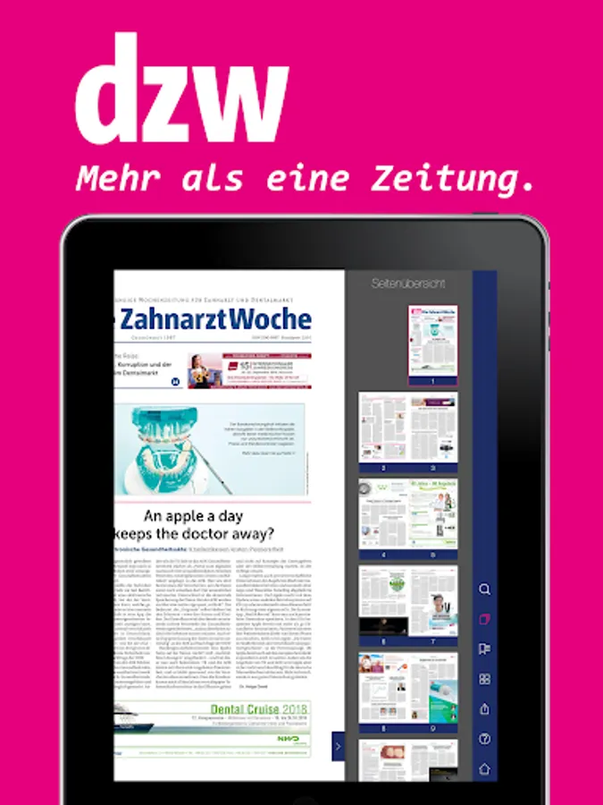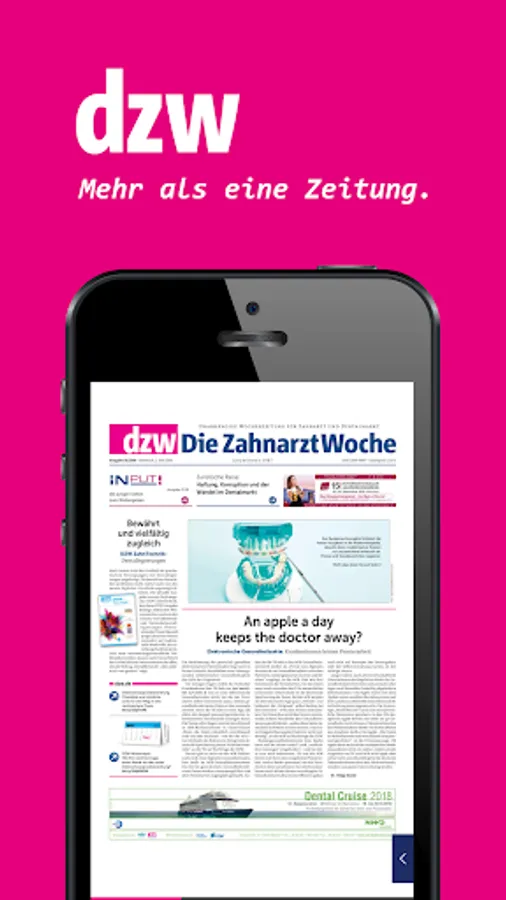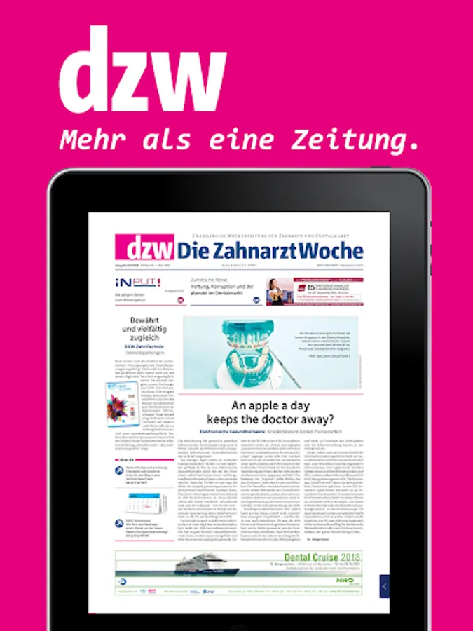 In the Newsstand app to read all the contents of dzw The dentist week digitally and enriched with multimedia content on your smartphone or tablet.